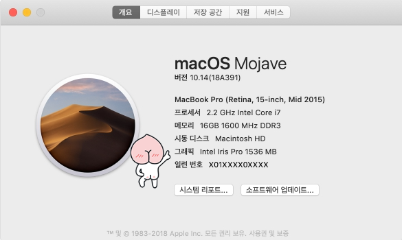 먼저 맥북 프로에서 사용 중인 그래픽카드의 확인 방법에 대해 알아보겠습니다.