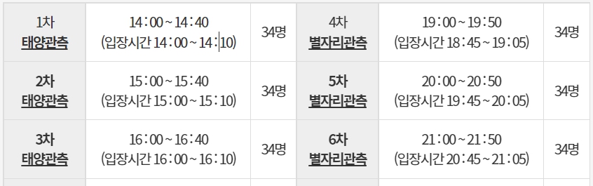 예약은 서귀포천문과학문화과 홈페이지에서 가능합니다. 시간표를 보고 방문하고자 하시는 시간대와 프로그램을 결정합니다. 수용인원은 일반석 38석, 휠체어석 2석으로 총 40석이지만 온라인을 통한 예약은 34명만 가능하니 방문을 원하신다면 일주일 전 넉넉하게 예약을 진행하시길 권해드립니다.
