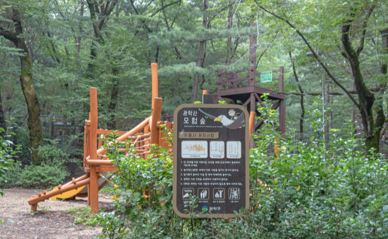 혹시 물놀이가 조금 지겨워진 아이들을 위한 놀이터도 구비되어있습니다. 신림계곡에서 조금 더 들어가면 어린이 물놀이장이 별도로 있긴 한데 사실 그렇게 큰 차이는 모르겠습니다. 자리잡기 쉬운 데크 근처에서 편하시게 노는 걸 추천드립니다!