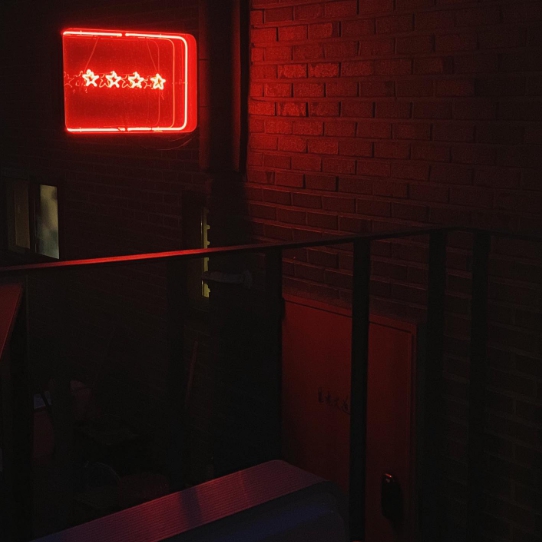 성광대도는 해방촌 위쪽에 위치하고 있는 홍콩영화 분위기가 물씬 풍기는 퓨전 펍입니다. 조금 찾기 어려우실 수 있으니 사진에 저 별 4개의 붉은 간판을 기억해주세요. 간판을 보고 바깥 계단으로 내려가면 인상적인 빨간 철문이 바로 성광대도입니다.